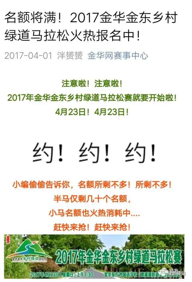 由金东区人民政府、金华市体育局、浙江马拉松及路跑协会主办,浙江省体育竞赛中心指导,金东区教育(文化体育)局、金东区旅游局、澧浦镇人民政府、岭下镇人民政府承办,金东区马拉松及路跑协会协办,金华市绿创文化传播有限公司执行的中国山水四项·2017金华金东乡村绿道马拉松赛已完美落下帷幕,活动得到各界朋友的一致好评。当然活动能够安全、成功完赛也离不开前期的精心筹备和各部门的支持,下面是本次活动的精彩回顾。