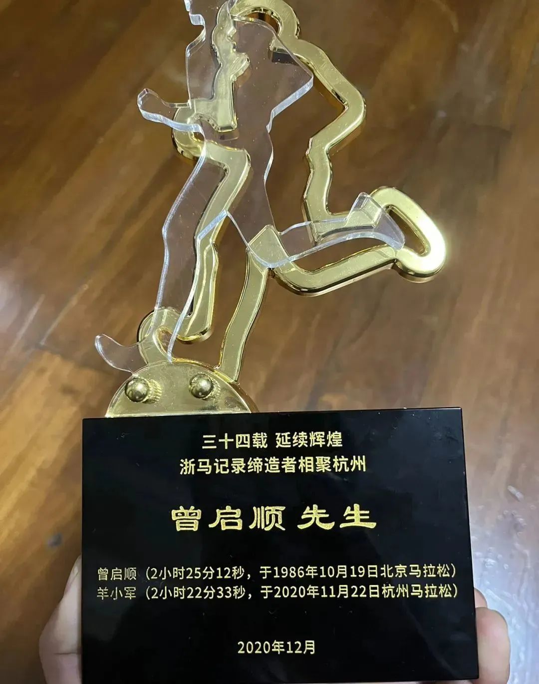 值得一提的是,曾启顺于1986年10月,在北京国际马拉松赛跑出的2小时25分12秒浙江马拉松纪录,尘封了34年。直到2020年,衢州钱江源马拉松赛,羊小军才以2小时24分20秒打破这一浙江马拉松纪录。