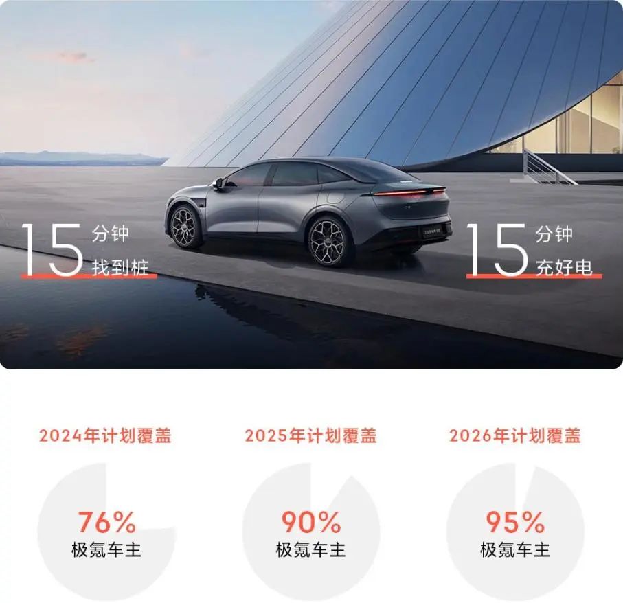 作为超快充引领者,极氪自建超快充桩保有量在车企排名中居第一。截至11月30日,极充站达401座,覆盖全国100城,提供2261个超快充电位。2024年,极氪更将实现新建约500座极充站的目标,在2026年极充桩保有量将达到10000根,真正实现「千站万桩,桩桩都是超快充」。