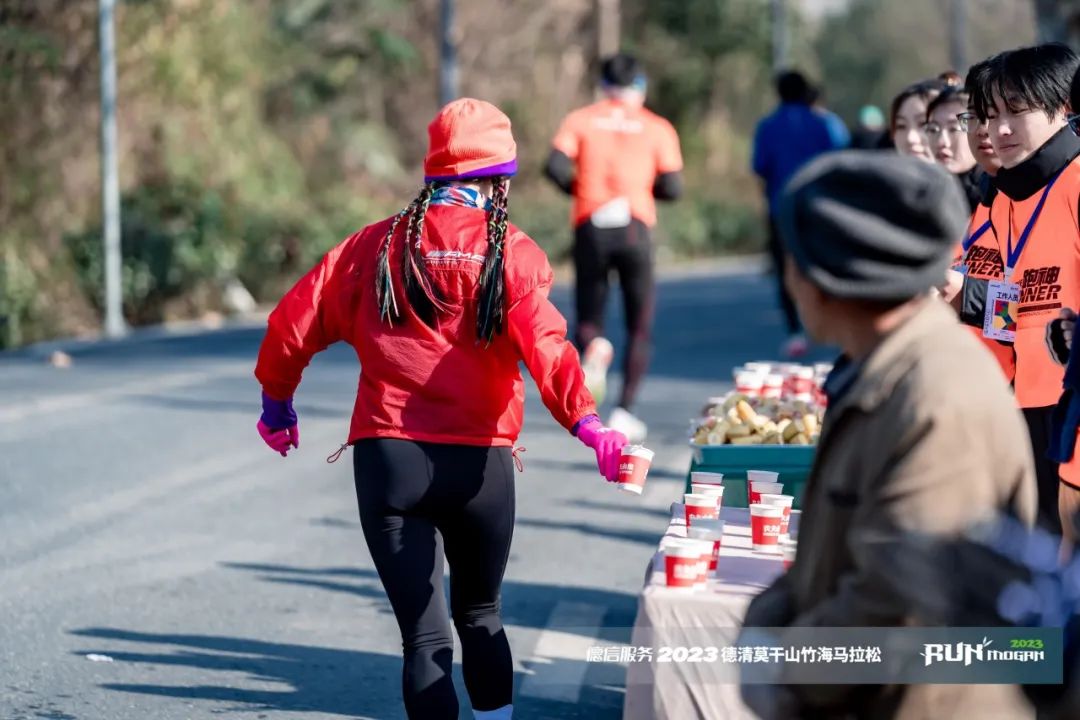 应对今年的强寒天气,颇有经验的组委会赛前通过短信、推文等形式提醒广大参赛选手做好保暖措施、量力而行;参赛包里除了历年都有的保暖手套基础上增加了暖宝宝;在赛事起点工作区域为选手提供一次性雨衣、保温毯等保温工具,按需发放;赛道不同站点提供品类丰富的能量补给服务;所有组别选手冲线后均发放超大尺寸厚浴巾,迅速抵挡寒风,提供及时保护;终点姜茶、可可、咖啡三款热饮无限畅饮,还可兑换热腾腾的莫干山特色美食-青团。这些细致安排,都为选手们创造了一个更加舒适的比赛环境,让他们在享受比赛的同时也能感受到关怀和温暖。