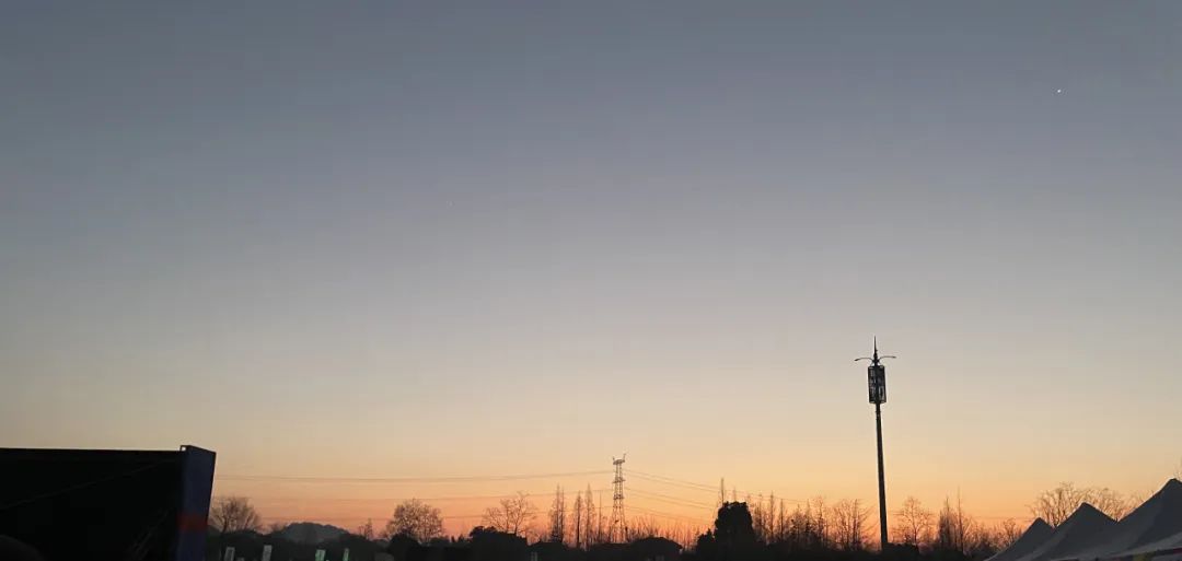 比赛那周杭州周边持续低温黄色报警,犹豫但还是坚持了,比赛当天早上爬起来一看气温:-6度,让人胆寒的数字,去年也就-3而已。装备当然已经事先准备好了,穿戴整齐去乘免费摆渡大巴。车窗外望去,天边橙光泛起、朝霞正美,心情也雀跃起来。