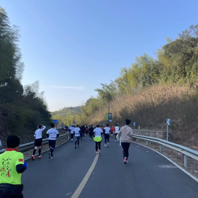 德清竹海马拉松作为我第一次跑比赛,第一次感受比赛的氛围,给自己人生阅历添上了浓墨重彩的一笔,赛前还会带领热身,比起来自己一个人在江边跑,在这整条赛道上都能感觉自己心潮澎湃,身体上的疲惫阻挡不住随波荡漾的心情飘向天空,虽然这次比赛自己是一个人,没有跑伴,但是一路上给我喊加油的跑友不在少数,并附带着很多热心的村民带着小孩还有志愿者,会伸出手来和我击掌并给我喊加油,平常在工作上压抑自己,但在赛道上大喊大叫似乎变成了正常的行为,所以我也会铿锵有力的举起手(ง •̀_•́)ง和他们说  加油——!!