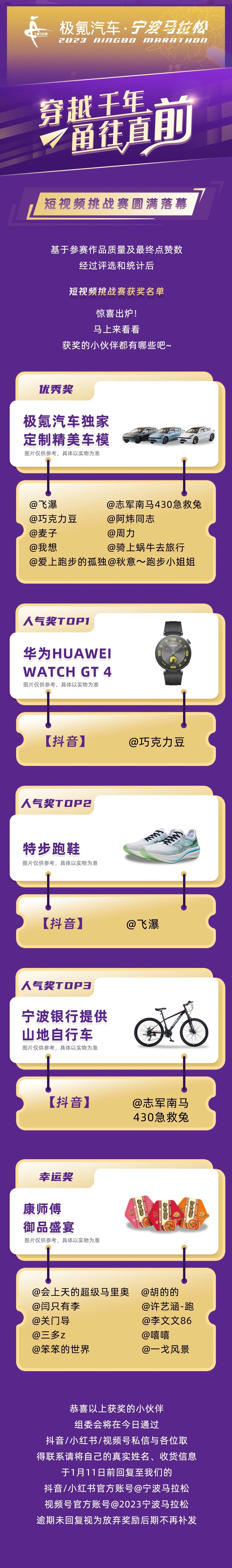 开奖啦!极氪汽车·2023宁波马拉松短视频挑战赛获奖名单出炉,快来看看有你吗?